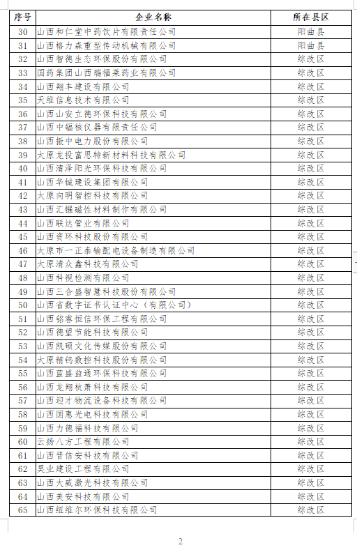 經研究,現將落實《太原市創新提升營商環境加快推進市場主體倍增工程行動方案》《太原市推進高新技術企業高質量發展的若干措施》政策2021年度高新技術企業營業收入首次達規模獎勵名單予以公示,公示期5個工作日(12月15日至21日)。如對公示企業有異議,請以書面形式提供有關證明材料,加蓋單位公章,于2022年12月21日17:00前反饋至太原市科技局高新科。